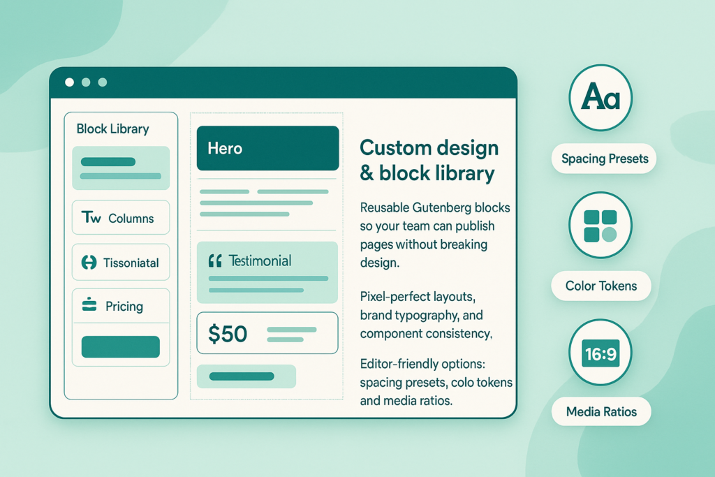 SERVICE WordPress & WooCommerce Design, build and optimize fast, secure WordPress sites and high-converting WooCommerce stores. Custom themes, reusable blocks, multilingual (WPML), and checkout flows that sell. Custom Themes Gutenberg Blocks WPML Woo Checkout Speed & SEO Backups & Security Get a quote See Process Custom design & block library Reusable Gutenberg blocks so your team can publish pages without breaking design. Pixel-perfect layouts, brand typography, and component consistency. Editor-friendly options: spacing presets, color tokens, and media ratios. WooCommerce that converts Optimized product pages, carts, and multilingual emails (WPML). Payment & shipping setups (Stripe, Razorpay) with tax and coupon logic. Performance: image pipeline, caching, and Core Web Vitals tuning. What we build Corporate Sites Modern, editable pages built on custom blocks and patterns. Woo Stores Simple to large catalogs, variations, subscriptions, memberships. Content Hubs Blogs, resources, landing page systems with schema & SEO baked in. What we build Plan & Sitemap Pages, content model, product taxonomies, and integrations. Design UI/UX for home, product, archive, blog, and checkout templates. Build Theme + blocks, Woo setup, payments, shipping, and emails. Optimize Caching, image pipeline, schema, Core Web Vitals, on-page SEO. Launch & Train Editor training, backups, monitoring, and support options. What we build Corporate Sites Modern, editable pages built on custom blocks and patterns. Woo Stores Simple to large catalogs, variations, subscriptions, memberships. Content Hubs Blogs, resources, landing page systems with schema & SEO baked in. Launch or upgrade your WP/Woo site Tell us your goals and we’ll map the fastest, cleanest path. Get a quote See Process